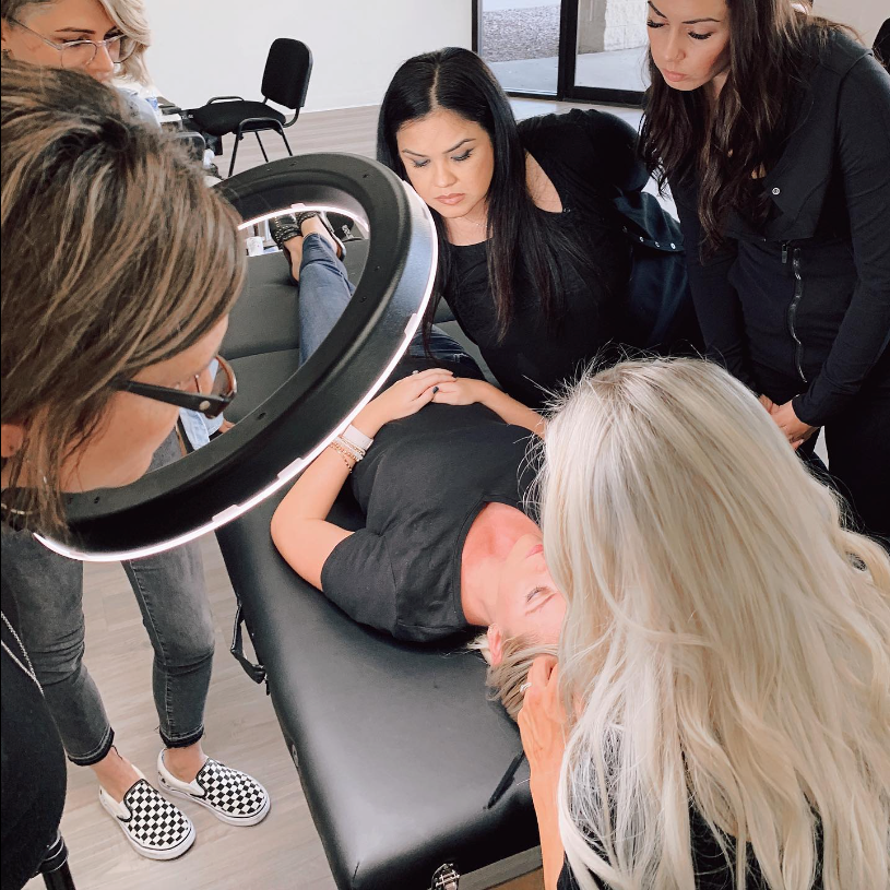 Driven by her commitment to community and empowerment, Maddie has not only transformed countless faces but has also trained thousands of aspiring artists through her signature trainings. Her belief in the power of education and collaboration has fostered a supportive network where individuals can thrive and succeed.